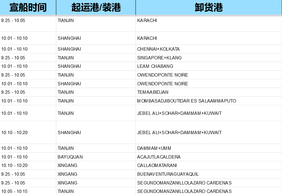 10月印巴、地中海等航线船期更新:天津 / 连云港等港装卸港明细