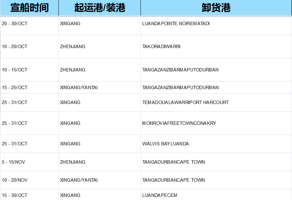 10-11月新港、镇江等多港船期及装卸港信息汇总,货代速览